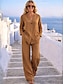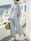 Mujer Conjuntos de pantalones parte superior del bolero Lino de algodón sintético Manga Larga Escote en Pico Color sólido Moda Ropa de calle Casual Diario Exterior Azul Piscina Negro Blanco Verano