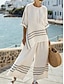 Mujer Conjuntos de pantalones parte superior del bolero Manga 3/4 Cuello Barco A Rayas Moda Ropa de calle Casual Diario Exterior Azul Piscina Negro Blanco Verano Holgado