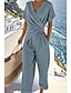Mujer Conjuntos de pantalones parte superior del bolero Manga Corta Escote en Pico Color sólido Frunce Moda Ropa de calle Casual Diario Exterior Azul Piscina Caqui Beige Verano Ajuste regular