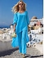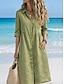 Mujer Vestido Midi Lino de algodón sintético vestido de playa Vestido informal Vestido de verano Vacaciones Básico Festivos Fin de semana Holgado Plano Manga 3/4 Cuello Barco Azul Piscina Negro Verde