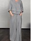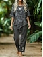 Mujer Conjuntos de lino y algodón Conjuntos de dos piezas Conjuntos de pantalones Manga Corta Cuello Barco Estampado Moda Ropa de calle Casual Diario Exterior Gris Oscuro Verano Holgado