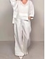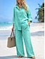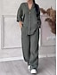 Mujer Conjuntos de pantalones parte superior del bolero Lino de algodón sintético Manga Larga Cuello Camisero Color sólido Moda Ropa de calle Casual Diario Exterior Azul Piscina Verano Holgado