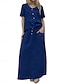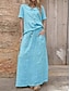 Mujer Vestido Midi Lino de algodón sintético Vestido de cambio Vestido informal Básico Clásico Diario Exterior Vacaciones Ajuste regular Color sólido Color puro Media Manga Escote en Pico Azul