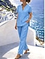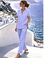 Mujer Conjuntos de lino y algodón Conjuntos de pantalones parte superior del bolero Manga Corta Escote en Pico Color sólido Moda Ropa de calle Casual Diario Exterior Azul Piscina Blanco Azul Marino