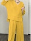 Mujer Conjuntos de pantalones parte superior del bolero Lino de algodón sintético Manga 3/4 Escote en Pico Plano Moda Ropa de calle Casual Diario Exterior Blanco Amarillo Vino Verano Holgado