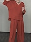 Mujer Conjuntos inspirados en el lino Conjuntos de dos piezas Camiseta Pantalones de lino Pantalones Media Manga Escote en Pico Color sólido Moda Ropa de calle Ropa Cotidiana Cita Blanco Rosa Naranja