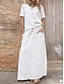 Mujer Vestido Midi Vestido de una línea Casual Holgado Plano Manga Corta Diseño Azul Piscina Blanco Marrón Verano Primavera Otoño