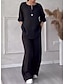 Mujer Conjuntos de lino y algodón Conjuntos de pantalones parte superior del bolero Media Manga Cuello Barco Color sólido Moda Ropa de calle Casual Diario Exterior Azul Piscina Negro Blanco Verano