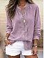 Mujer Camisa Camisas de algodón y lino Blusa Color sólido Básico Casual Manga 3/4 Cuello con muescas. Tops regulares Diario Blanco Rosa Verde Trébol Verano Primavera