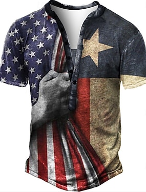 4 de julio de 2026 250.º Día de los Caídos Camiseta de manga corta para hombres diseñador patriótico impresión 3D bandera de EE. UU. henley casual diaria