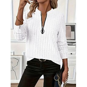 Mujer Blusa Cremallera Color sólido Elegante Casual Manga Larga Cuello Barco Tops regulares Diario Azul Piscina Negro Blanco Vino Verde Ejército Primavera Otoño Invierno