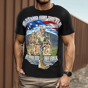 4 de julio de 2026 250º Día de los Caídos Camiseta de hombre patriótica Patriot impresión 3D de la bandera de EE.UU. veteran de cuello redondo de manga corta Daily Street