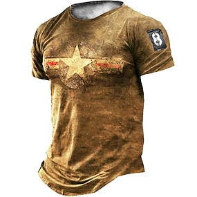 4 de julio de 2026 250º Día de los Caídos Camiseta de Manga Corta de Cuello Redondo para Hombre Patriótica Vintage Retro con Impresión 3D Veterano