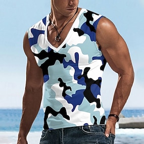 Camisas Patrioticas para Hombres Camiseta Camo Camuflaje Sin Mangas Camiseta 3D Print Cuello en V Camiseta Tropical Vacaciones Hawaiana Blanca Roja Azul Verano Primavera Ropa S M L XL XXL XXXL