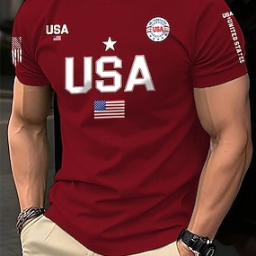 4 de julio de 2026 250º Día de los Caídos Camiseta de Manga Corta Gráfica Patriótica de la Bandera Nacional para Hombre