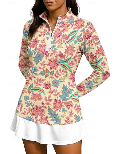 Mujer Flores Tops Camisas Camisa deportiva Camisas de polo Manga Larga Cremallera Floral UPF50+ Resistente a los rayos UV Alta elasticidad Dispersor de humedad Transpirable Voleibol Tenis Golf Cuello