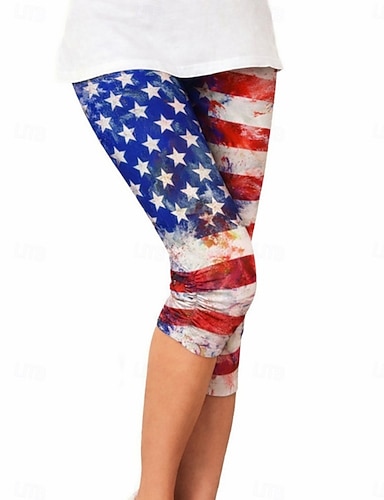 día de la independencia americana Mujer Camiseta Camiseta superior Estampado Graphic Elegante Clásico Casual Manga Corta Cuello Barco Tops regulares Diario Deportes Noche Azul Piscina Rojo Verano