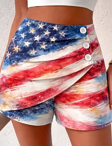 día de la independencia americana Mujer Camiseta Camiseta superior Estampado Graphic Bandera Elegante Clásico Casual Manga Corta Cuello Barco Tops regulares Diario Deportes Noche Azul Piscina Verano