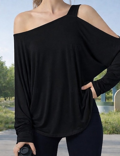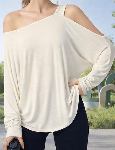 Mujer Tee Camiseta deportiva Color sólido Elegante Casual Manga Larga Hombros Caídos Tops regulares Gimnasia Deportes Fin de semana Negro Marfil Rosa Rojo Azul claro Verano Primavera Otoño