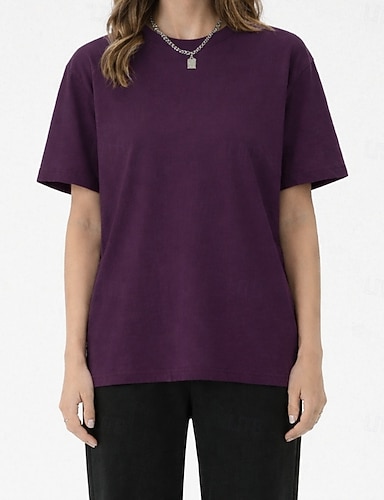 Mujer Talla grande Tee Camiseta deportiva Color sólido Elegante Clásico Casual Manga Corta Cuello Barco Escote Redondo Tops largos Diario Gimnasia Deportes Negro Verano Primavera