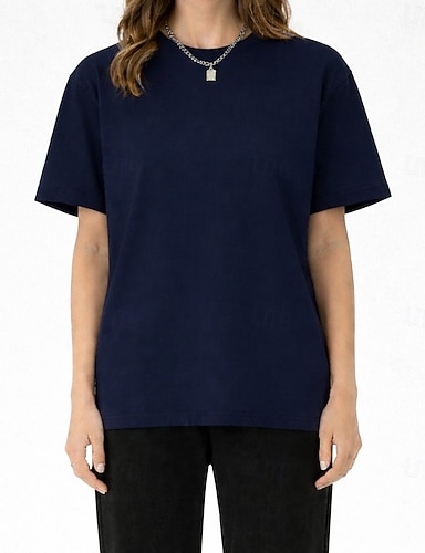 Mujer Tee Camiseta deportiva 100% Algodón Costuras expuestas Color sólido Elegante Básico Casual Manga Corta Cuello Barco Tops regulares Gimnasia Deportes Noche Azul Piscina Negro Albaricoque Gris