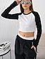 Mujer Tops tejidos de canalé Camiseta raglán Retazos Bloque de Color Color sólido Vintage Elegante Clásico Manga Larga Cuello Barco Escote Redondo Tops cortos Diario Deportes Fin de semana Negro y