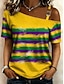 Mardi Gras Mujer Camiseta Graphic Elegante Casual Manga Corta Cuello asimétrico Tops regulares Diario Deportes Fin de semana Amarillo Morado Verano Primavera