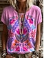 Mujer Camiseta Estampado Floral Graphic Vintage Elegante Clásico Manga Corta Escote en Pico Tops regulares Diario Deportes Noche Azul Piscina Rosa Morado Beige Verano Primavera