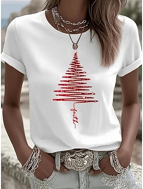 Navidad Mujer Camiseta Estampado Graphic Navidad Vintage Elegante Clásico Manga Corta Cuello Barco Escote Redondo Tops regulares Diario Azul Piscina Negro Blanco Rosa Rojo Verano Primavera Otoño