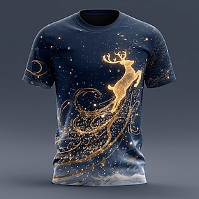 Navidad Hombre Cada Camiseta Manga Corta Camiseta Impresión 3D Cuello Barco Camisa Diario Design Artístico Vacaciones Fiesta Calle Azul oscuro#1 Azul Oscuro Todas las Temporadas Ropa S M L XL XXL XXXL