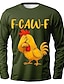 Camiseta de manga larga con estampado 3D de gallo para hombre, estilo jerga divertida, cuello redondo, moda diaria, básica, informal, para uso diario, en negro, rojo y azul, tallas S, M, L, XL, XXL y