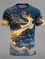 Hombre Animal Dragón 3D Camiseta Manga Larga Camiseta Impresión 3D Cuello Barco Camisa Moda Básico Calle Casual Diario Azul 2# Azul 1# Verano Primavera Ropa S M L XL XXL XXXL