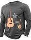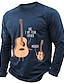 Camiseta de manga larga con diseño de ukelele y guitarra, divertida, con parodia musical, para hombre, color azul marino jaspeado, con gráficos, estilo músico, ropa, tallas S, M, L, XL, XXL y XXXL.
