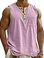 Hombre Camisa de lino Camiseta sin mangas Top Camisetas Interiores Sin Mangas Henley Verano Primavera Plano Moda Design Básico Bolsillo Botones Casual Vacaciones Calle Negro Rosa Azul Marino Camiseta