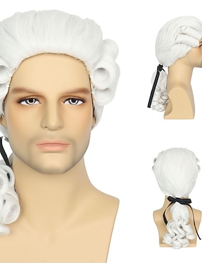 Peluca de Juez Colonial del Siglo XVIII para Hombres Peluca de Cosplay de Carnaval Pelucas de Halloween