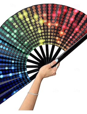 Abanico de mano plegable holográfico grande con diseño de botas en el suelo, para baile en línea, popping, abanicos de aplausos para baile en línea, artesanía plegable con láser de colores.