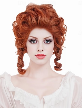 Peluca Victoriana en Marrón Auburn para disfraz de Rococó pelucas coloniales del siglo XVIII cabello vintage barroco esponjoso para mujeres para carnaval festival o fiesta