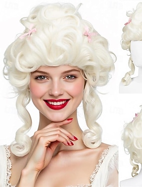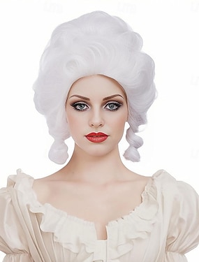 Peluca de los Años 20 Peluca de Cosplay Peluca Sintética Peluca de Cosplay María Antonieta Rizada Rizada Peluca del Siglo XVIII de Largo Medio Cabello Sintético Blanco Pelucas Blancas de Halloween