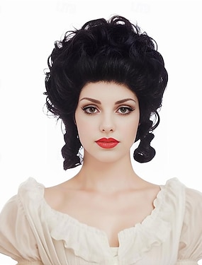 Peluca de mujer estilo rococó cosplay de personaje de reina de la Revolución Francesa peluca sintética con gorra transpirable