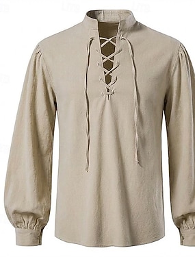 Medieval Renacimiento Camisas Talla Grande Pirata Caballero Ostentoso Color sólido Disfraz Hombre Pirata Fiesta Rendimiento Mascarada Adulto Camisas Todas las Temporadas