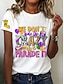 Mardi Gras Mujer Camiseta Estampado Graphic Letra Vintage Elegante Clásico Manga Corta Cuello Barco Tops regulares Diario Fin de semana Negro Blanco Morado Verano Primavera