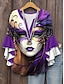 Camiseta de mujer Carnival de manga larga tipo camiseta gráfico casual de manga larga cuello en V tops regulares impresión diaria con recortes en púrpura verde primavera otoño preotoño