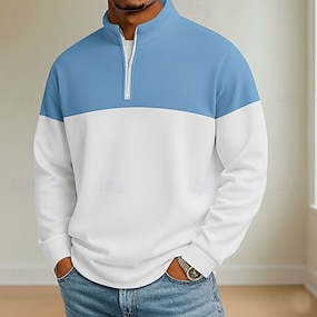 Hombre Bloque de color Raya Camisetas polo con cremallera Manga Larga Camisas de polo cuello de abuelo Casual Escuela Ropa Deportiva Festivos Ropa Cotidiana Impresión 3D Polo con cremallera de un