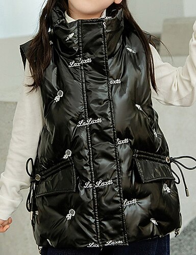 Niños Chica Chaqueta de plumas chaleco abrigo Chaqueta acolchada Color sólido Deportes Bolsillo Mantiene abrigado Exterior Abrigo Ropa de calle 4 años + Invierno Negro Blanco