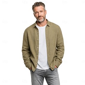 Hombre Chaqueta de lino Formal Hogar Botones Minimalista Primavera & Otoño Otoño Todas las Temporadas Color sólido Activo Vintage Cuello Camisero Regular Azul Marino Verde Trébol Caqui Azul claro