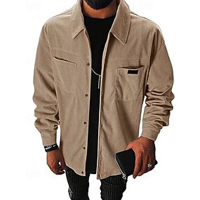 Hombre Chaqueta de camisa Chaqueta de Pana Chaqueta casual Vacaciones Diario Transpirable Bolsillo Primavera Otoño Plano Moda Clásico Diseño Regular Caqui Gris Oscuro Beige Chaquetas