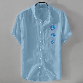 Hombre Camisa Camisa de lino Camisa de verano Camisa de playa Abotonar la camisa Tortuga Vacaciones Festivos Negro Blanco Rosa Azul Piscina Manga Corta Cuello Vuelto Verano Ropa