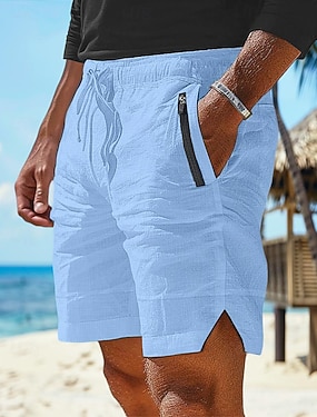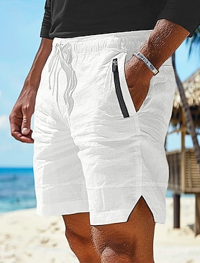 Hombre Pantalón corto Pantalones cortos de lino Pantalones cortos de verano Pantalones cortos de playa Botones Bolsillo Pierna recta Plano Comodidad Transpirable Longitud de la rodilla Diario