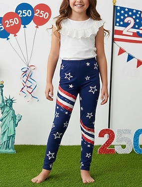 Chica 3D Graphic Bandera Pantalones Polainas Impresión 3D Primavera Otoño Ropa de calle Básico Mallas Niños 4-12 años Casual Diario Exterior Ajuste regular