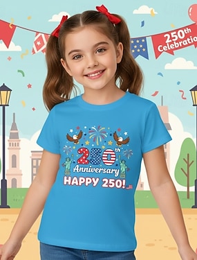 Chica 3D Graphic 250 aniversario Camiseta Manga Corta Impresión 3D Verano Primavera Deportes Moda Ropa de calle Niños 4-12 años Cuello Barco Casual Diario Exterior Ajuste regular